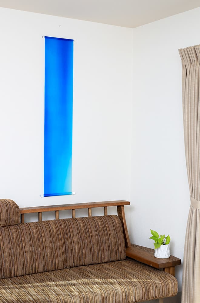 清流、爽やかな空、生命の源の海をイメージした青色は、空間に清らかな雰囲気を醸し出し、心を落ち着かせ、見る者の集中力を高めてくれるでしょう。