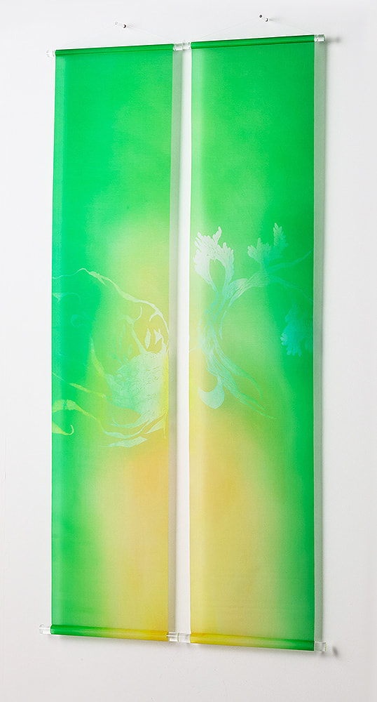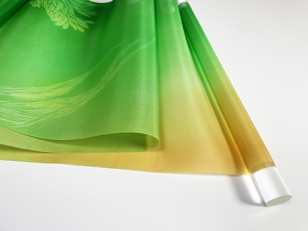 癒し、成長、安心、バランスをイメージした緑色は、安らぎや癒し穏やかな気持ちにし、安心や安全を連想させ、リラックス空間を創り出してくれるでしょう。京友禅の技法を用い、繊細に創作された型の使用によって生まれた高級感があります。 2本ペアで創り出す空間の迫力により、色彩イメージや作品の世界観が広がるでしょう。